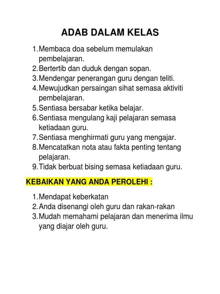 Hiasan Dinding Ruang Kelas Dekorasi Dinding Sekolah Adab Belajar Shopee Indonesia