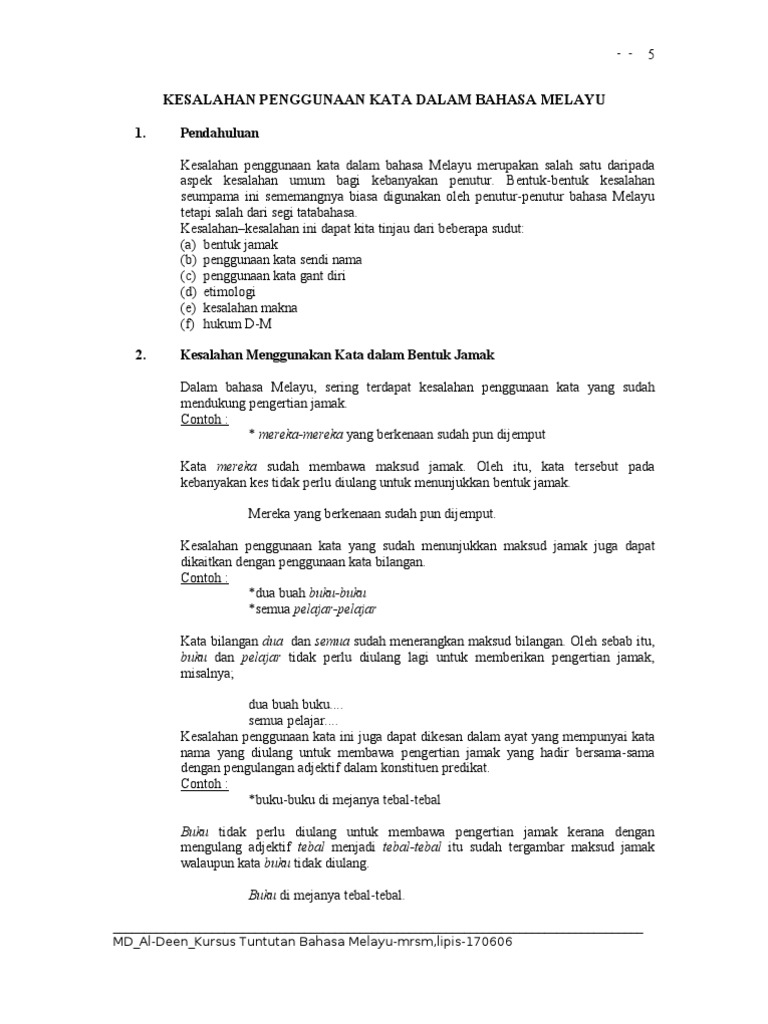 Kesalahan Penggunaan Kata Dalam Bahasa Melayu