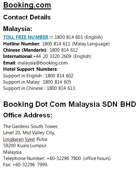 Booking Com Malaysia Contact Number