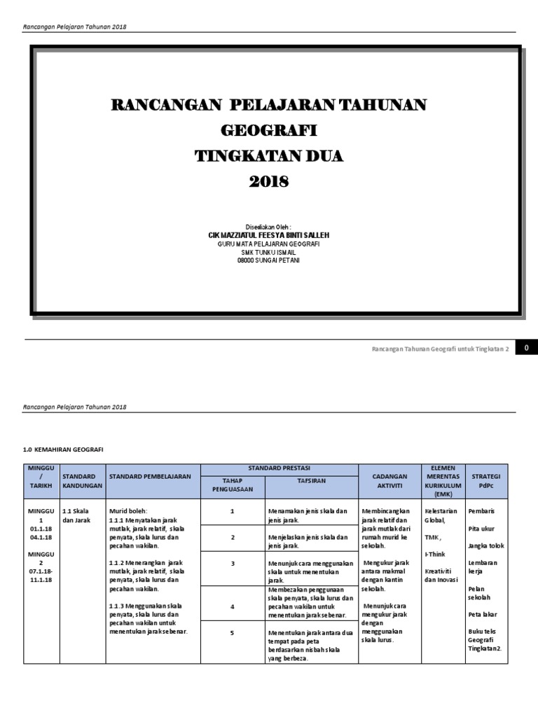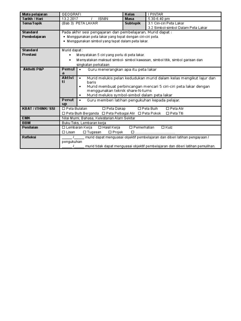 Rancangan Pengajaran Harian Seni Dan Geografi Tingkatan 1 Dan 2 2019