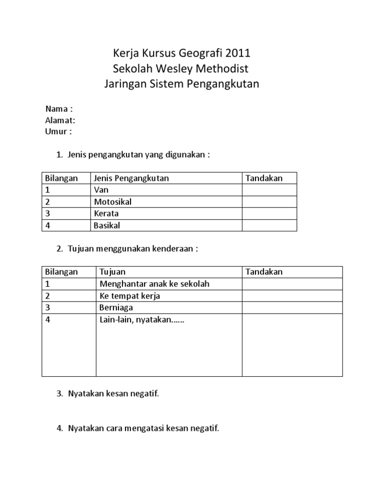 Contoh Soalan Borang Soal Selidik Geografi Soalan Ak
