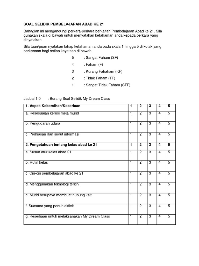 Soal Selidik Pembelajaran Abad Ke 21