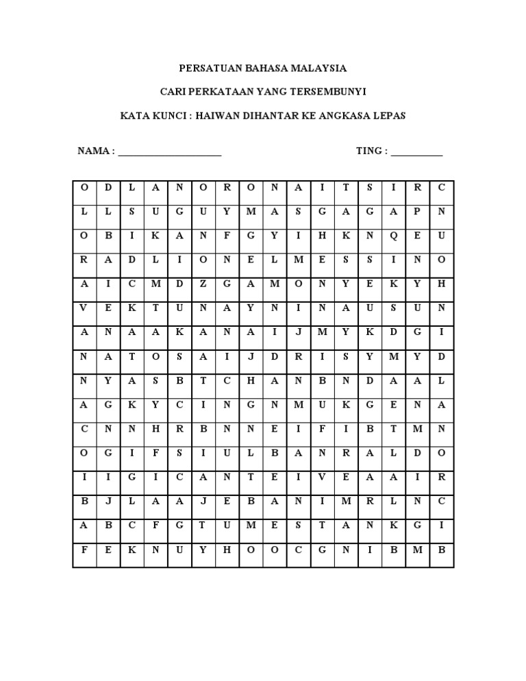 Cari Perkataan Tersembunyi Bahasa Melayu Sekolah Rendah