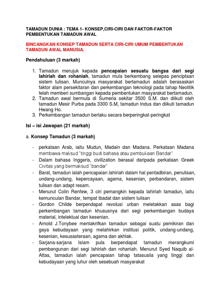Konsep Ciri Ciri Dan Faktor Kemunculan Tamadun Awal Docx