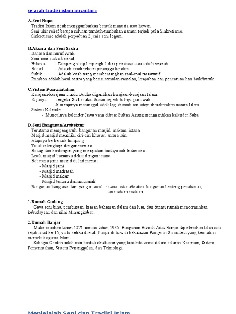 Sebutkan Ciri Ciri Seni Budaya Islam Di Indonesia Sebutkan Itu