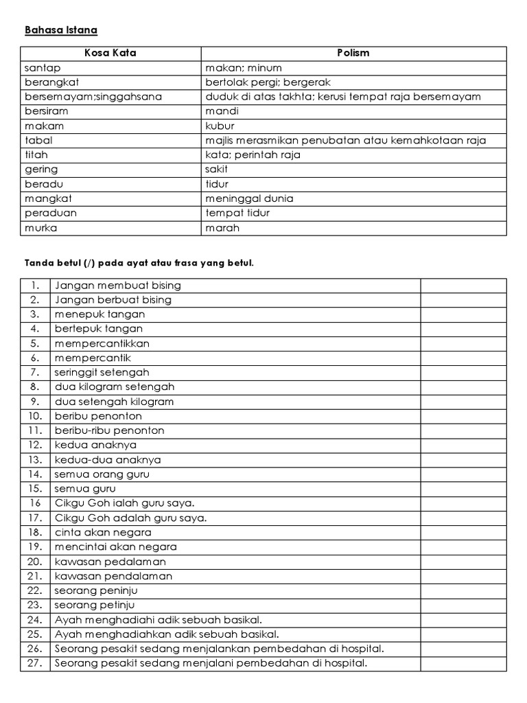 Contoh Bahasa Istana Senarai Maksud Ayat Terbaik Pt3