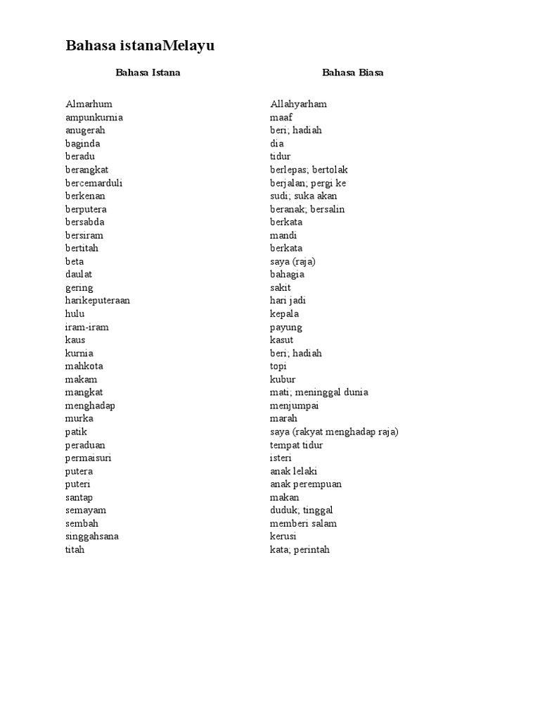 I Tukarkan Bahasa Istana Yang Diberi Kepada Bahasa Biasa Bahasa Istana Bahasa Biasa