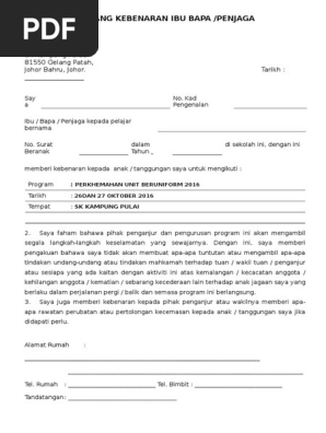 Doc Contoh Surat Kebenaran Ibu Bapa Dol Juan Academia Edu