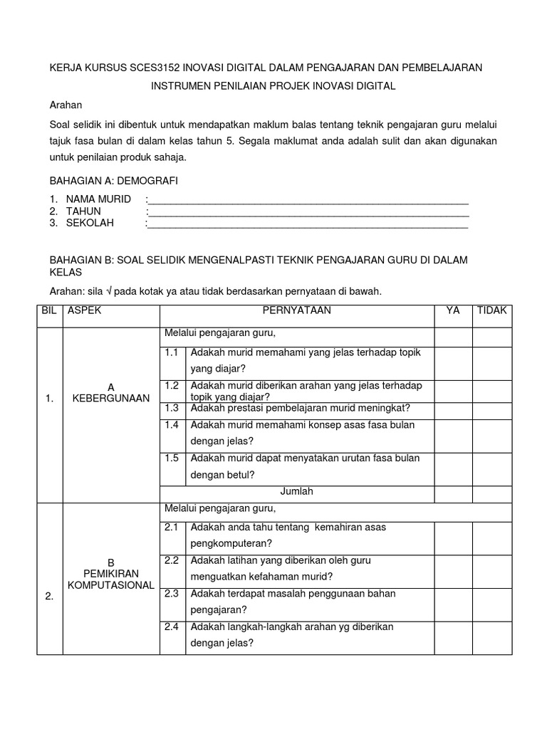 Contoh Soal Selidik Dalam Kerja Kursus
