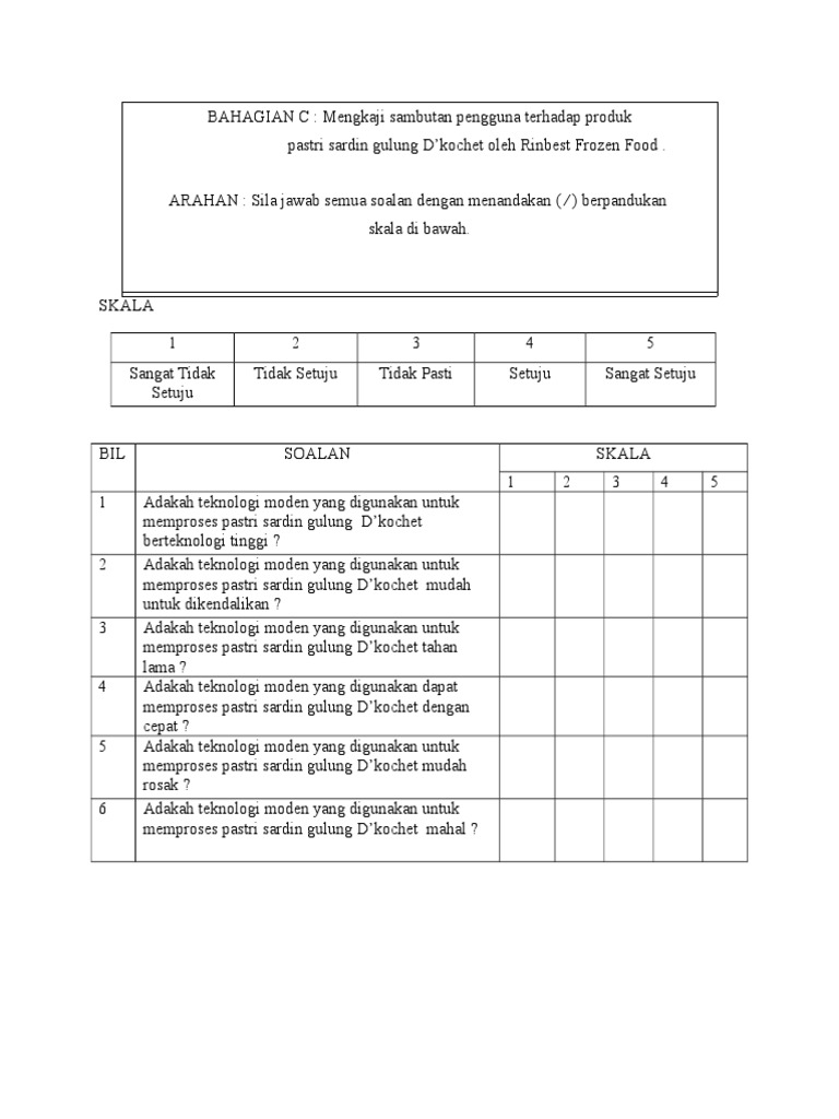 Contoh Borang Soal Selidik Produk Baru Contoh Songo