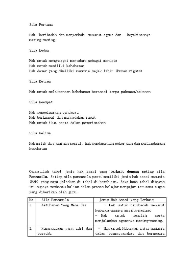Contoh Kewajiban Asasi Manusia Dalam Sila Pertama Sampai Sila Kelima Id Pengertian