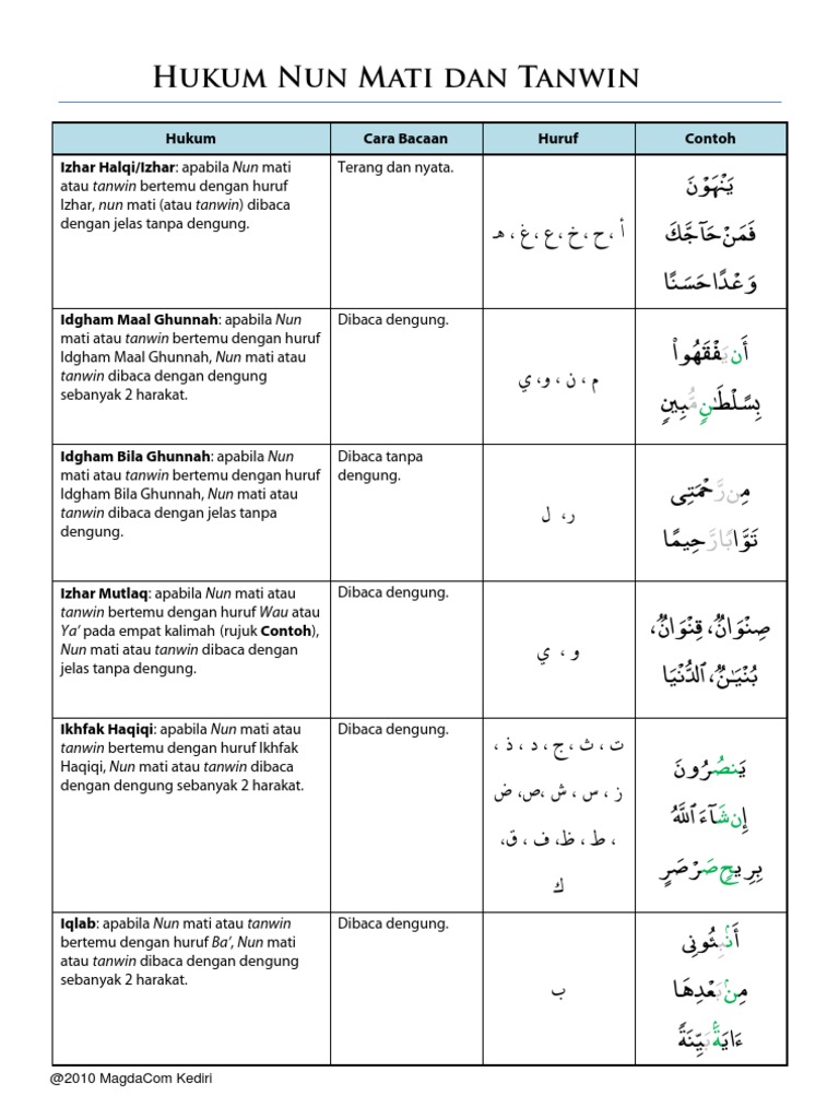 Tabel Contoh Izhar Dengan Nun Sukun Pengetahuan Membaca Kutipan Agama