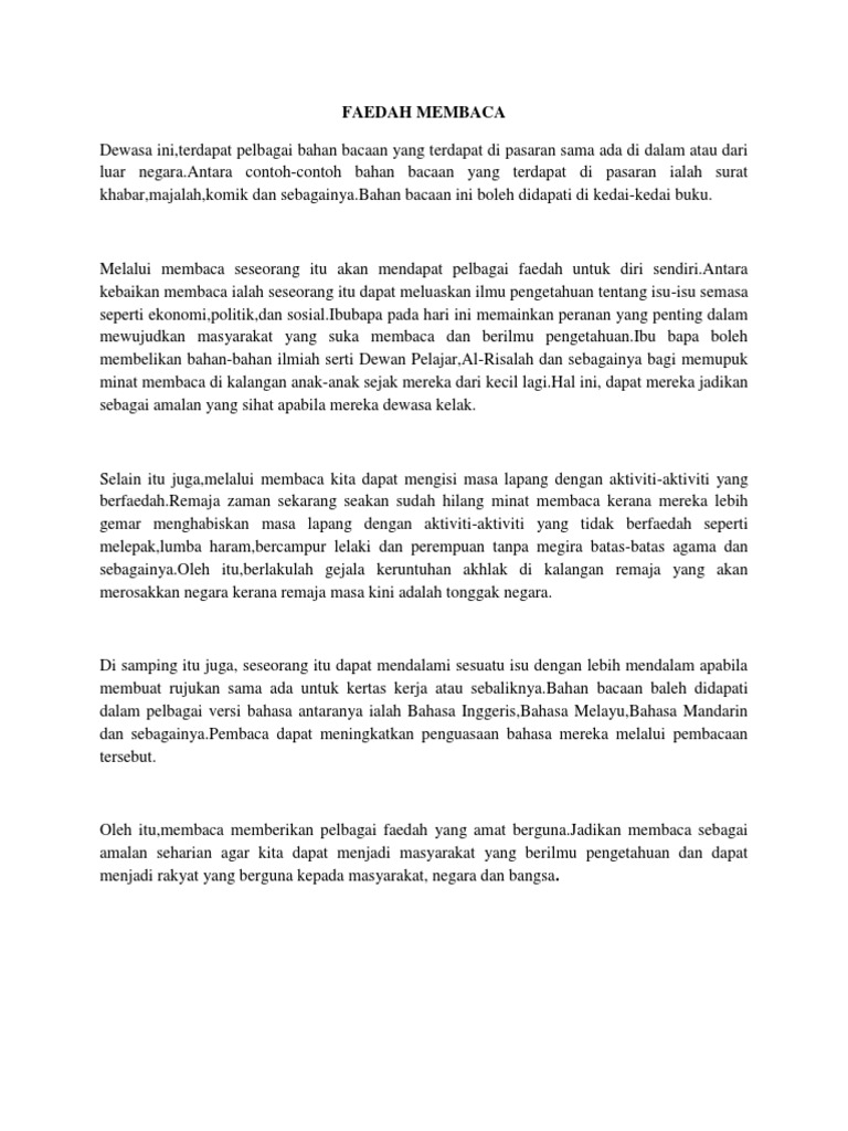 Contoh Karangan Faedah Membaca موضوع Nota Bahasa Arab Facebook