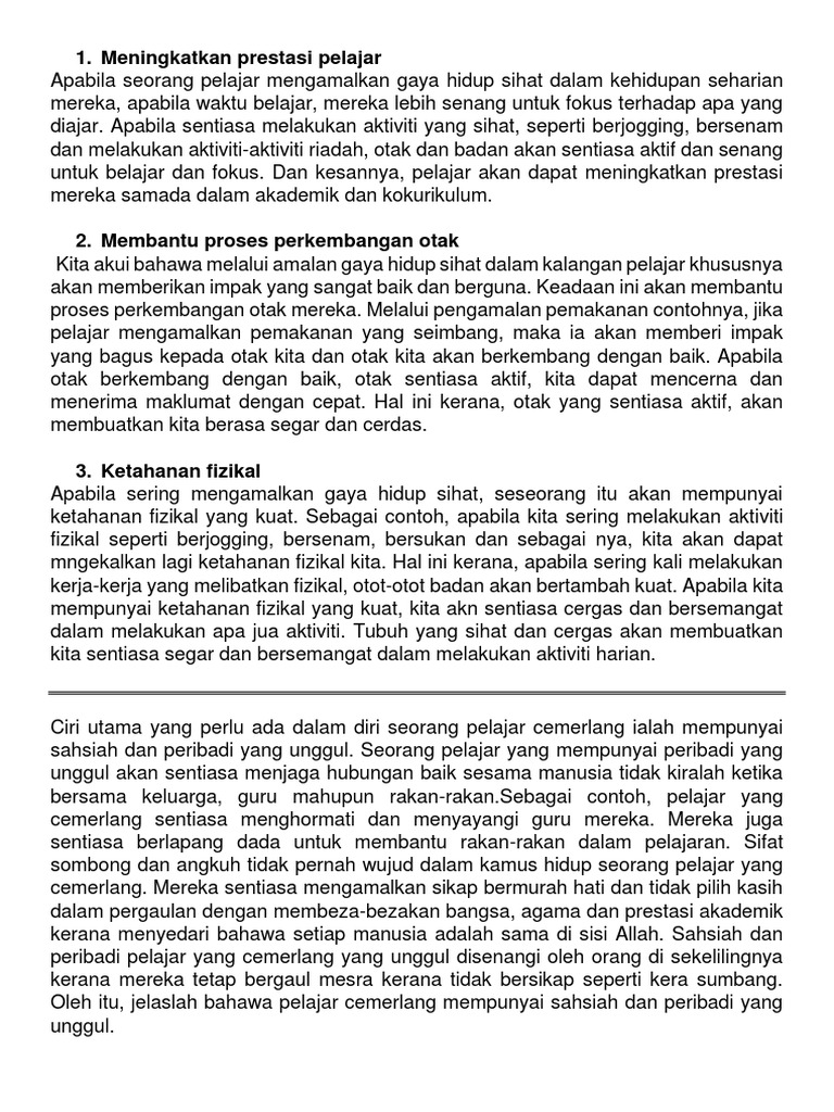 Gaya Hidup Sihat Dan Ciri Ciri Pelajar Cemerlang