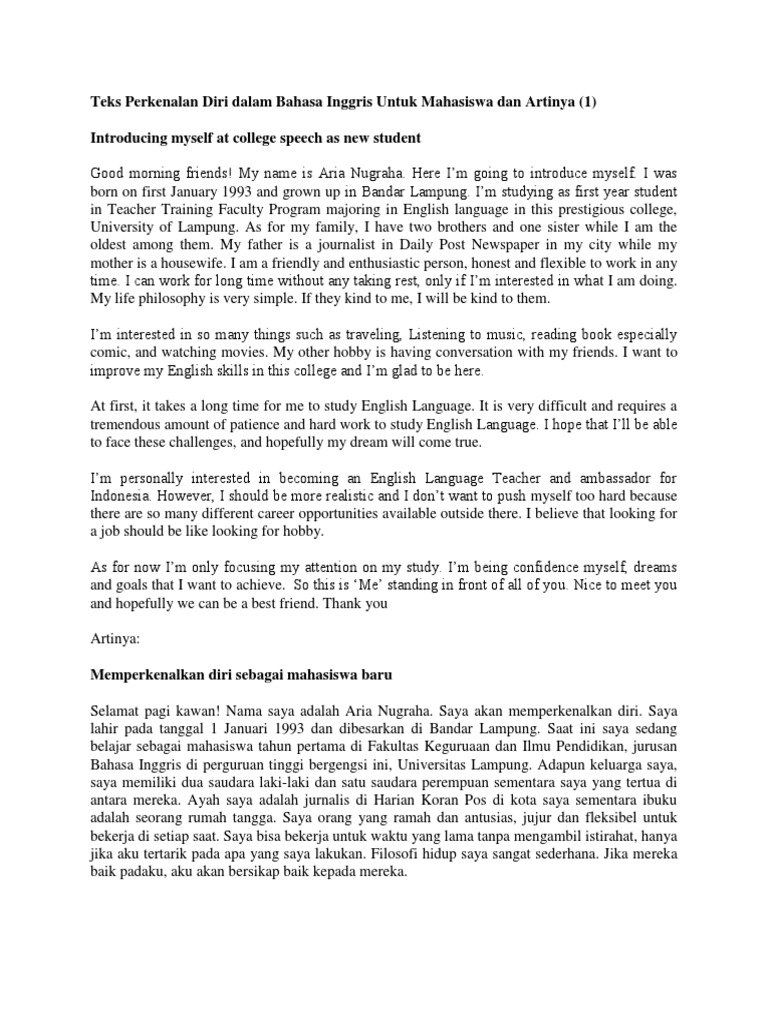 Teks Perkenalan Diri Dalam Bahasa Inggris Untuk Mahasiswa Dan Artinya Indonesian Language