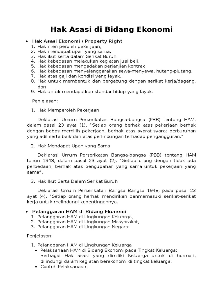 Hak Asasi Di Bidang Ekonomi