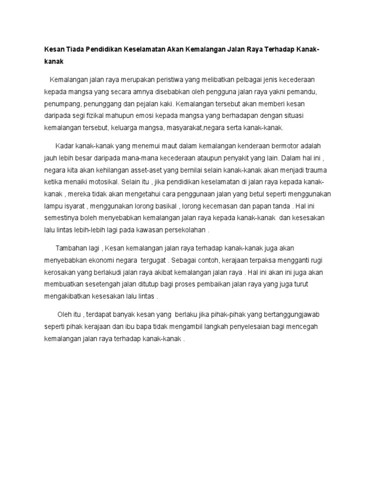 Kesan Tiada Pendidikan Keselamatan Akan Kemalangan Jalan Raya Terhadap Kanak Docx
