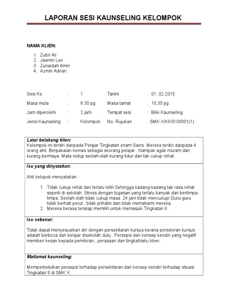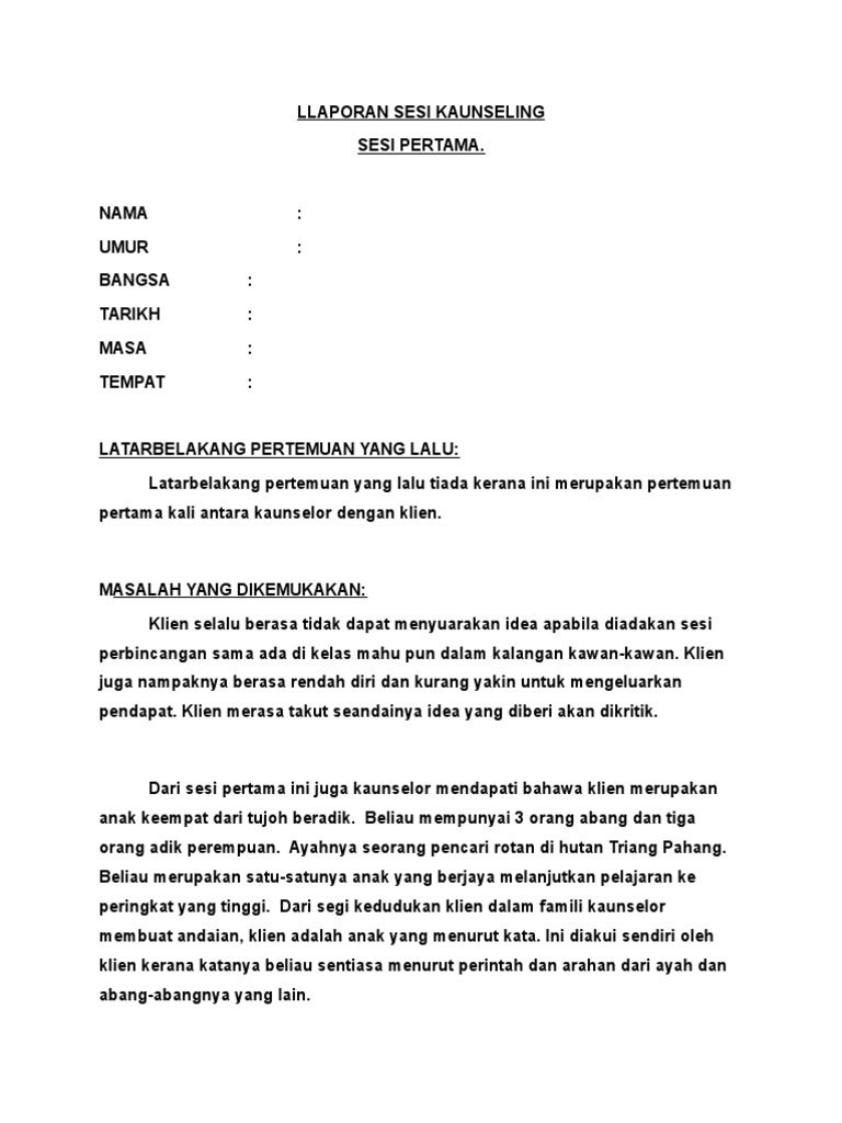 Contoh Format Laporan Sesi Kaunseling Download Docx