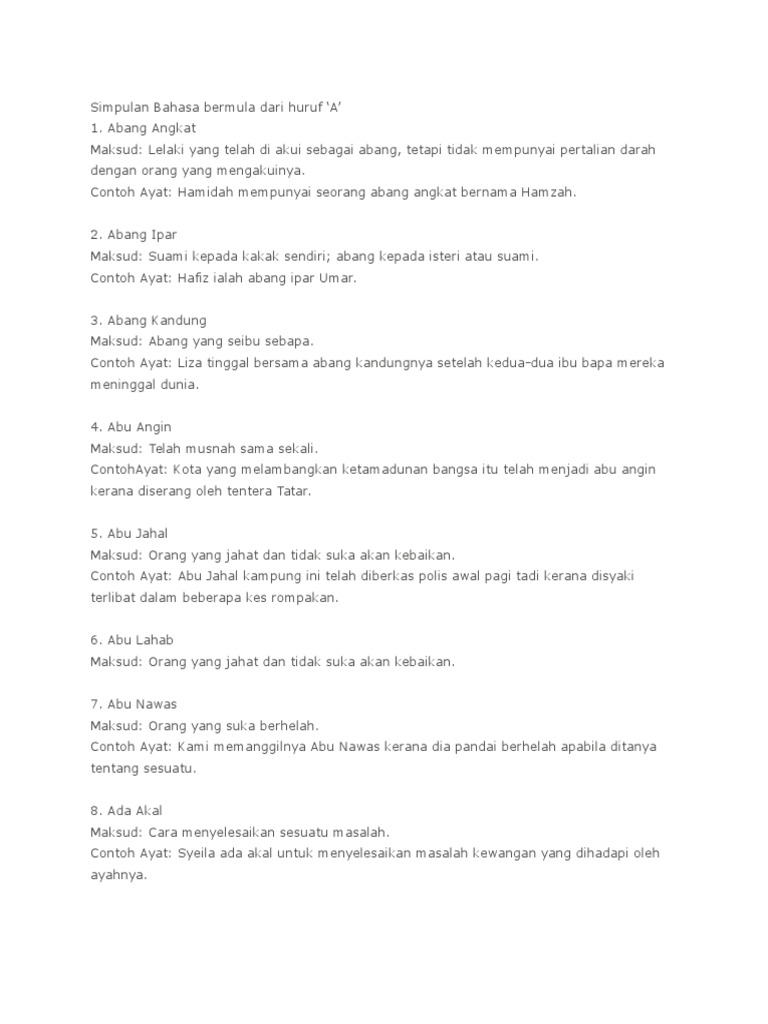 Contoh Ayat Simpulan Bahasa Tahun 2