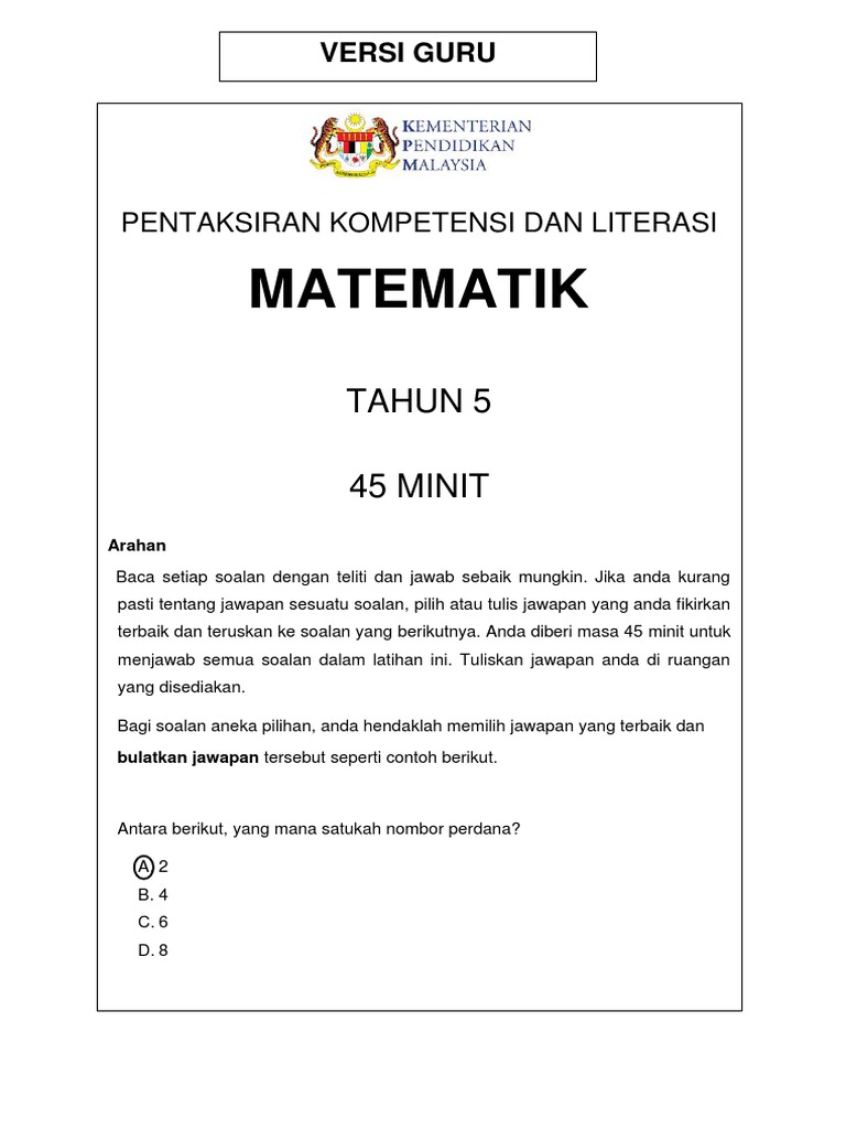Tahun 5 Pkl Matematik Bm Guru V2 0 Pages 1 33 Flip Pdf Download Fliphtml5