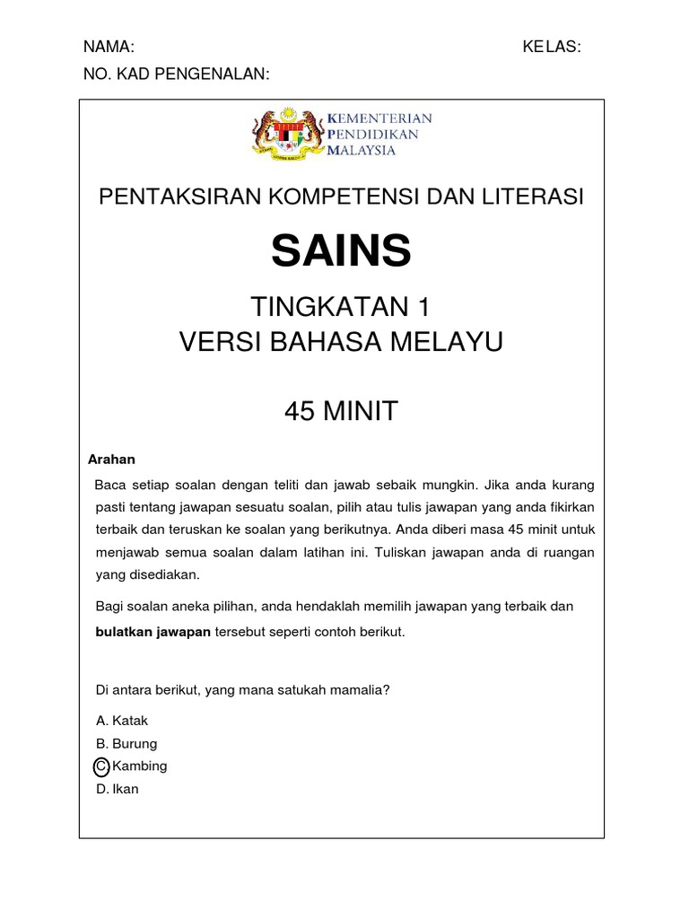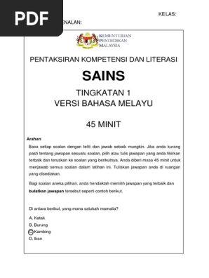 Contoh Soalan Pentaksiran Kompetensi Dan Literasi Tingkatan 1