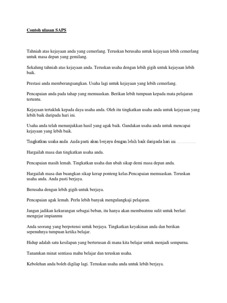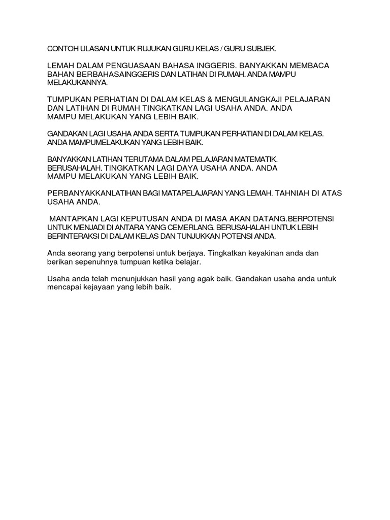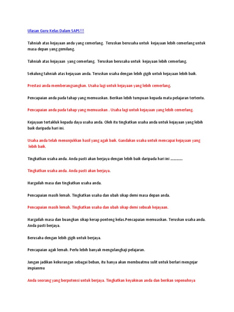 Contoh Ulasan Guru Kelas Dalam Saps