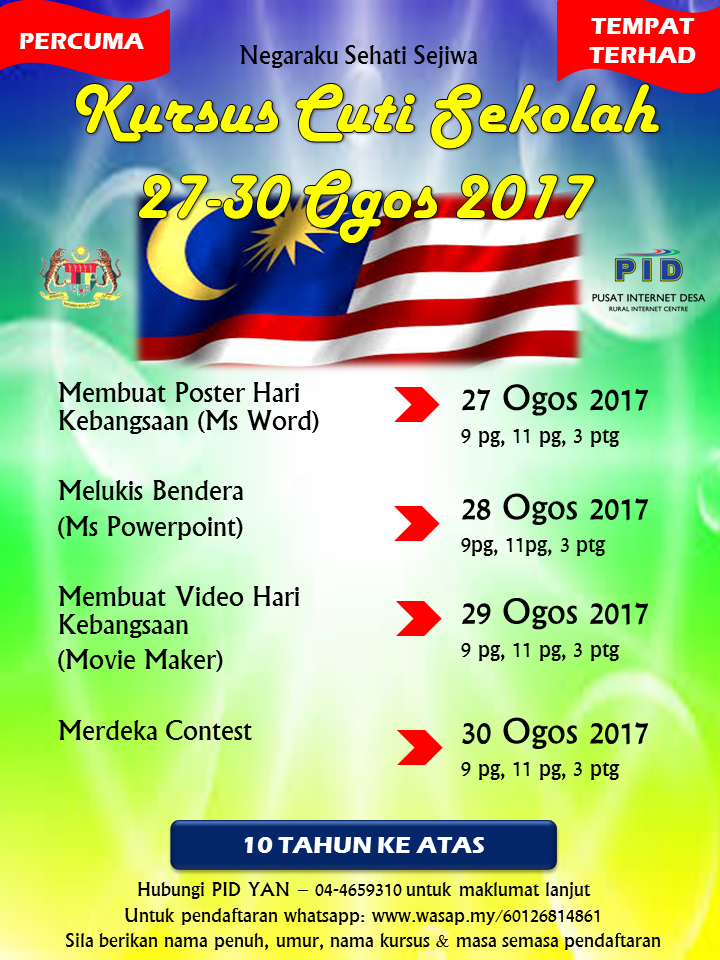 Jadual Kursus Cuti Sekolah Ogos 2017 Pusat Internet Desa Yan