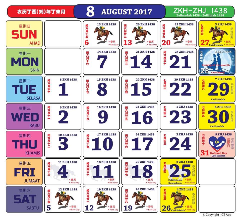 Pusat Sumber Kalendar Bulan Ogos 2017