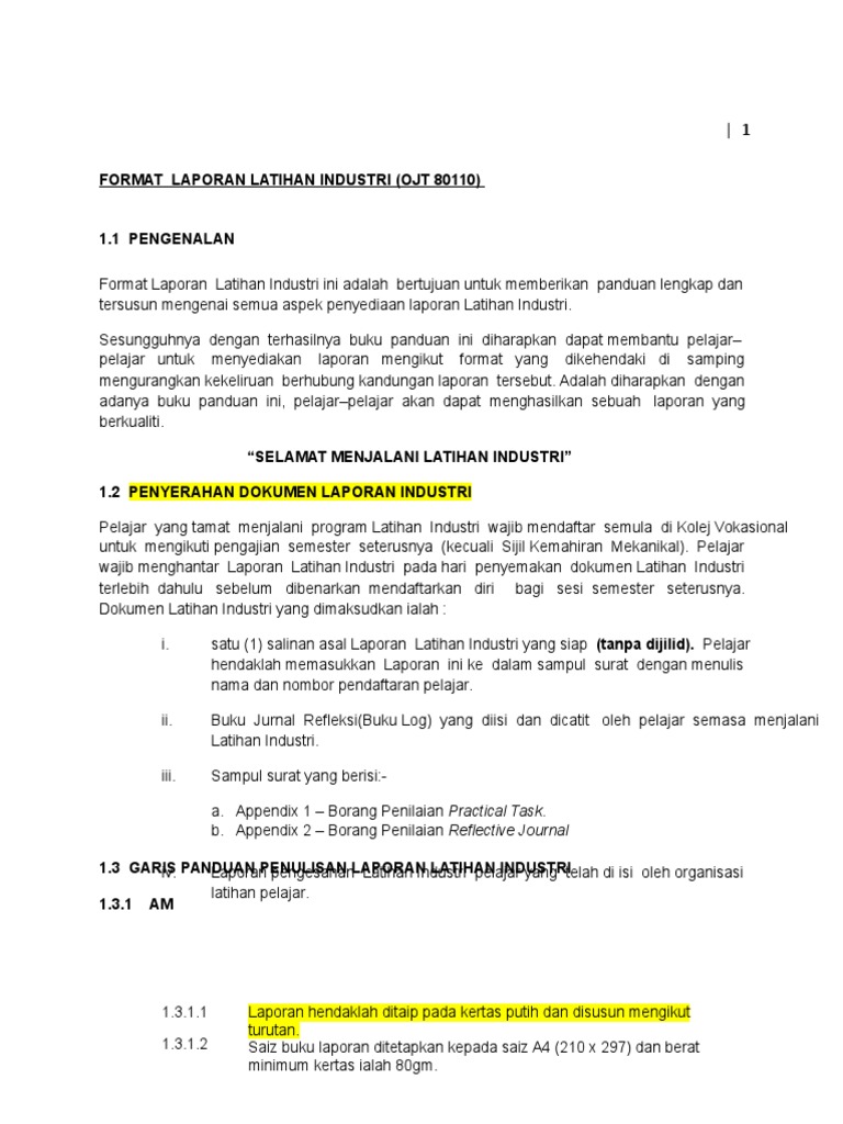 Doc Panduan Penulisan Laporan Akhir Ojt 2020 Shahmi Haziq Academia Edu