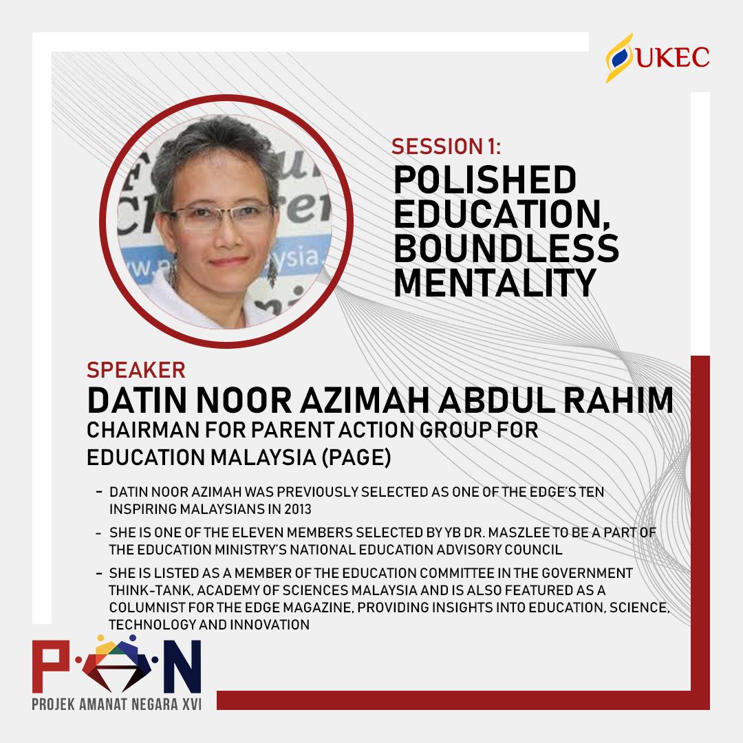 Uzivatel Ukec Na Twitteru Our First Panellist For This Session Is Datin Noor Azimah Abdul Rahim She Is The Chairman Of The Parent Action Group For Education Page And One Of The