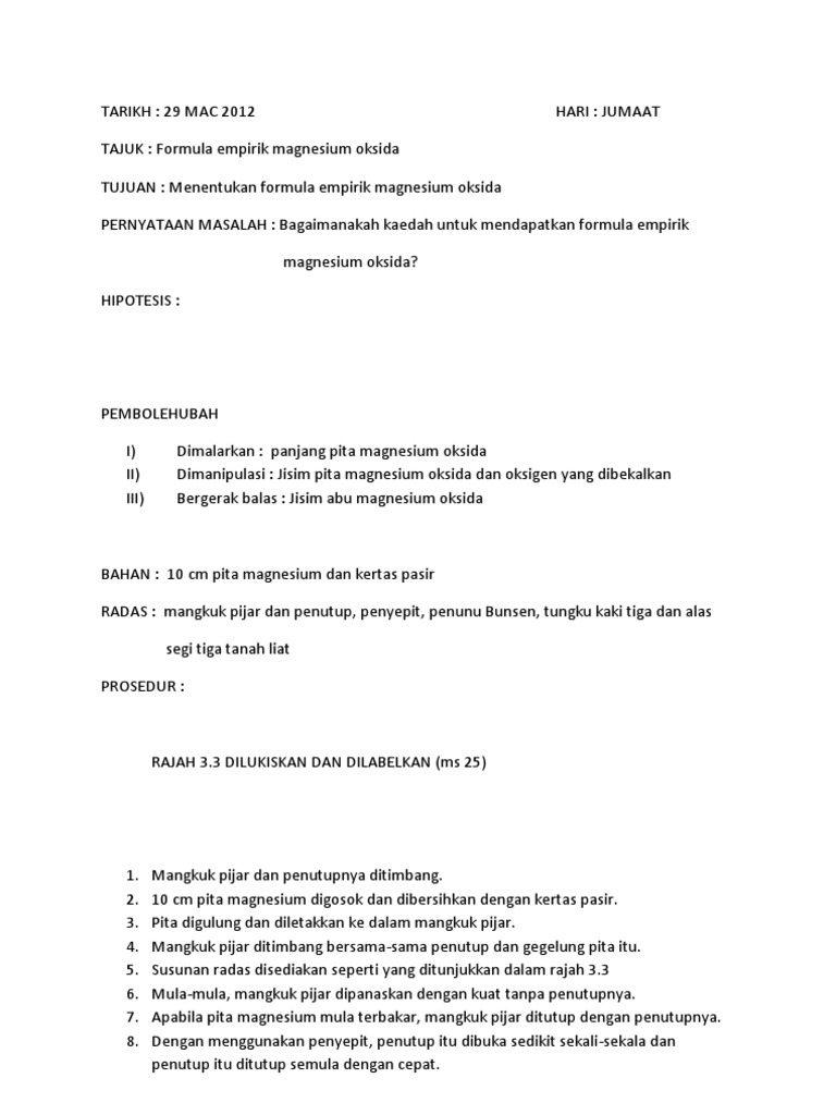 Eksperimen Menentukan Formula Empirik Kuprum Docx Pdf Document