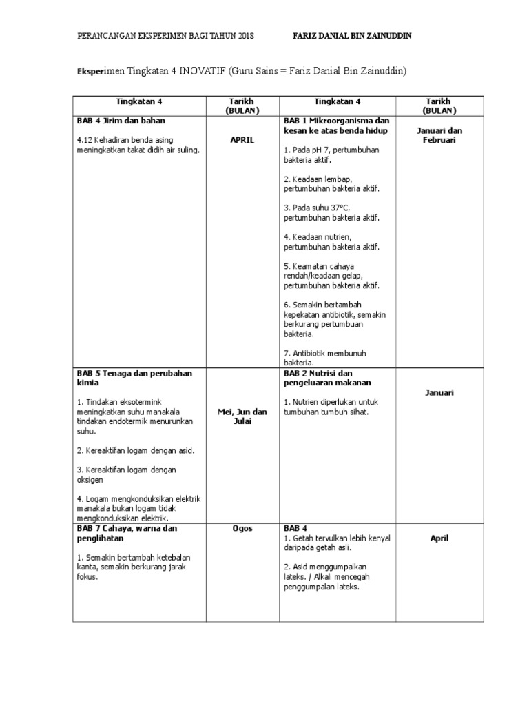 Perancangan Eksperimen Sains Tingkatan 4 Bagi Sesi 2018
