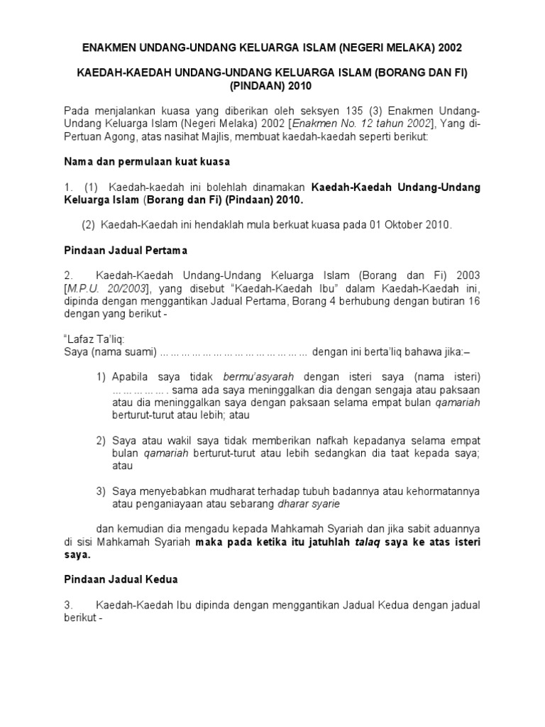 Http Www Mahsyariahmelaka Gov My Msnmfiles Enakmen Pdf Format En 1202 I Seksyen1 Pdf