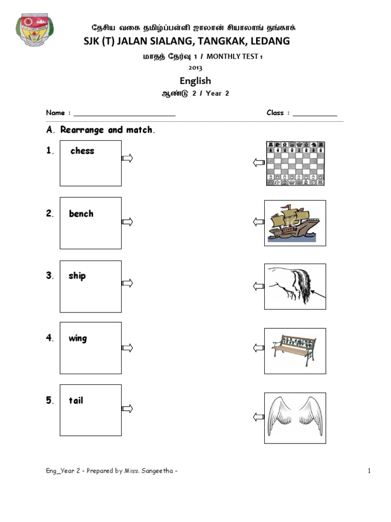 Teacherfiera Com Year 2 1st English Assessment 2018