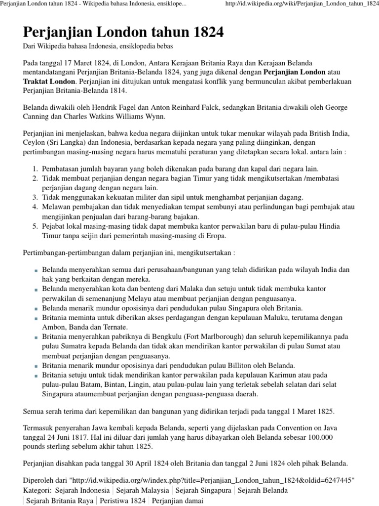 Perjanjian London Tahun 1824 Wikipedia Bahasa Indonesia