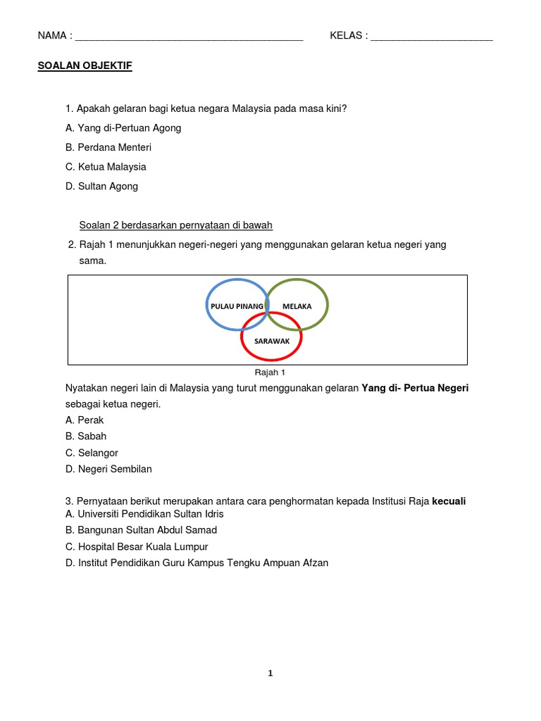 Soalan Objektif Pulau Pinang Melaka