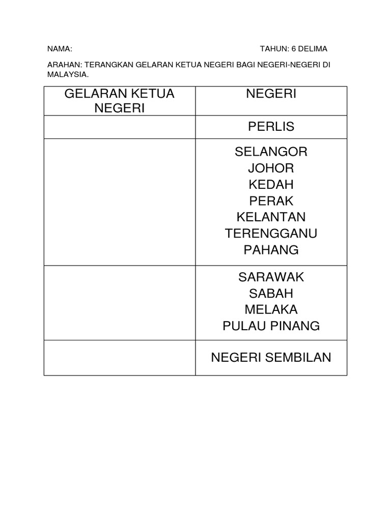Sejarah Tahun 6 Tajuk 10 Negeri Negeri Di Malaysia