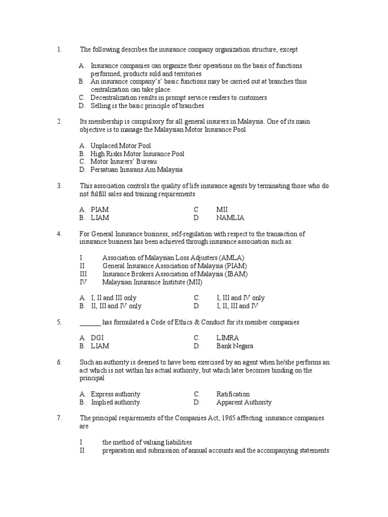 General Insurance Exam Questions And Answers Malaysia