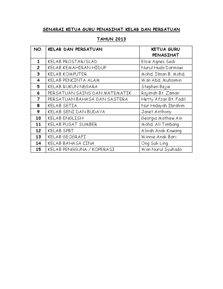 Tanggungjawab guru penasihat atau pemimpin memastikan mesyuarat agung diadakan bagi tujuan melantik ahli jawatankuasa. En bahalu a l raju cik lye yong mui laporan aktiviti. Duil lakasa 3 11 pusat sumber ketua. Science maths english quiz.