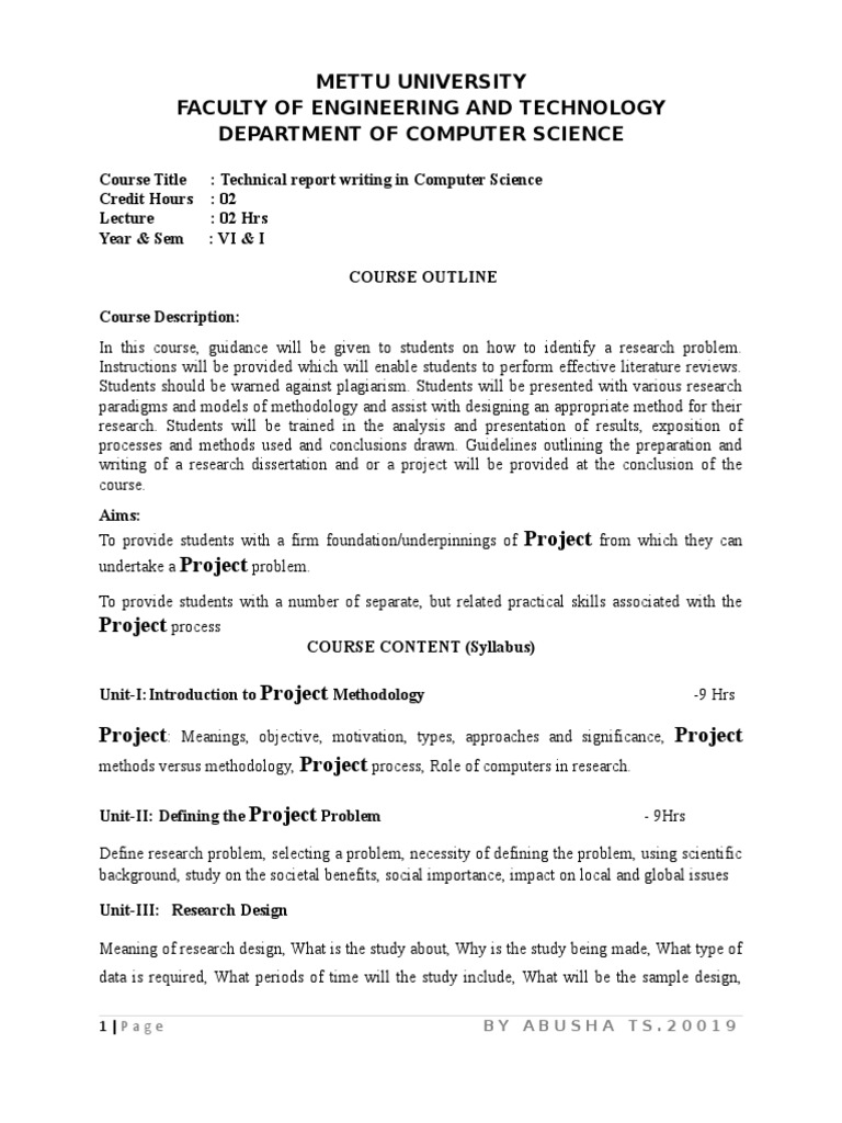 Research Methodology For Project Work For Undergraduate Students