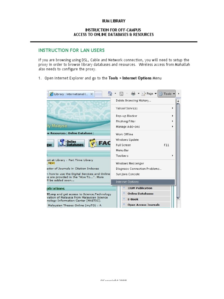 Instruction For Lan Users Iium Library Instruction For Off Campus Access To Online Databases Resources
