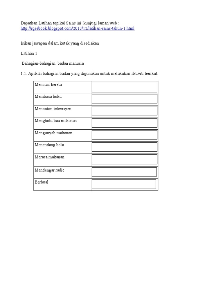Latihan Topikal Sains Tahun 1