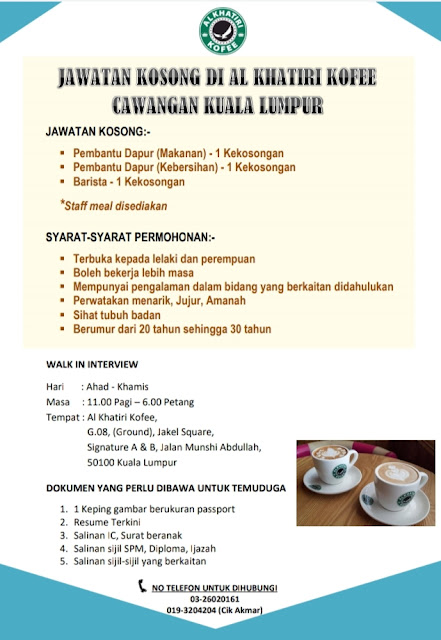 Jmc Kota Bharu Jawatan Kosong Di Al Khatiri Coffee Cawangan Kuala Lumpur