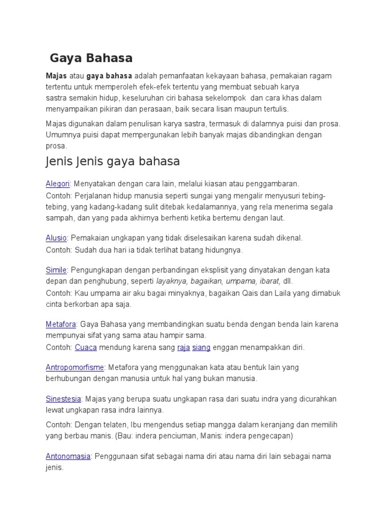 56 Macam Gaya Bahasa Majas Dan Contohnya Komplit