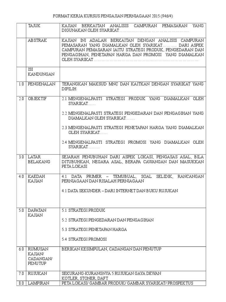 Format Kerja Kursus Pengajian Perniagaan 2016 Doc