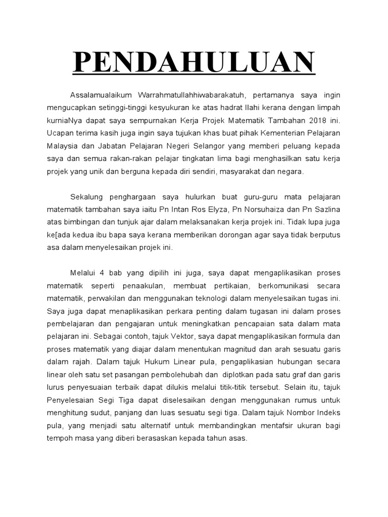 Kerja Projek Matematik Tambahan 2018 Selangor
