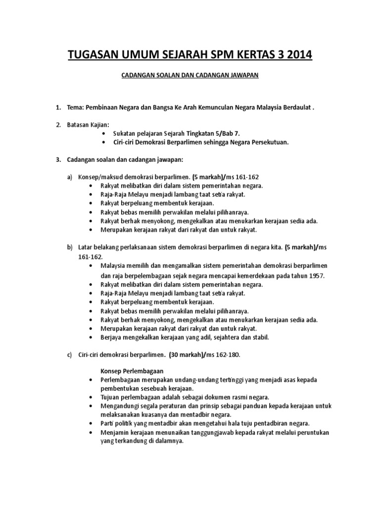 Kertas 3 Sejarah Spm 2014 Page1 Tema Umum Pembinaan Negara Dan Bangsa Ke Arah Kemunculan Negara Malaysia Berda School Work School Teaching English Grammar