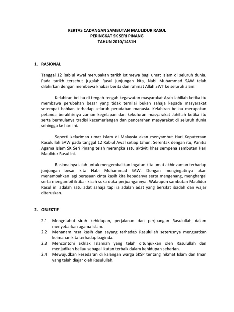 Contoh Kertas Kerja Maulidurrasul 2016
