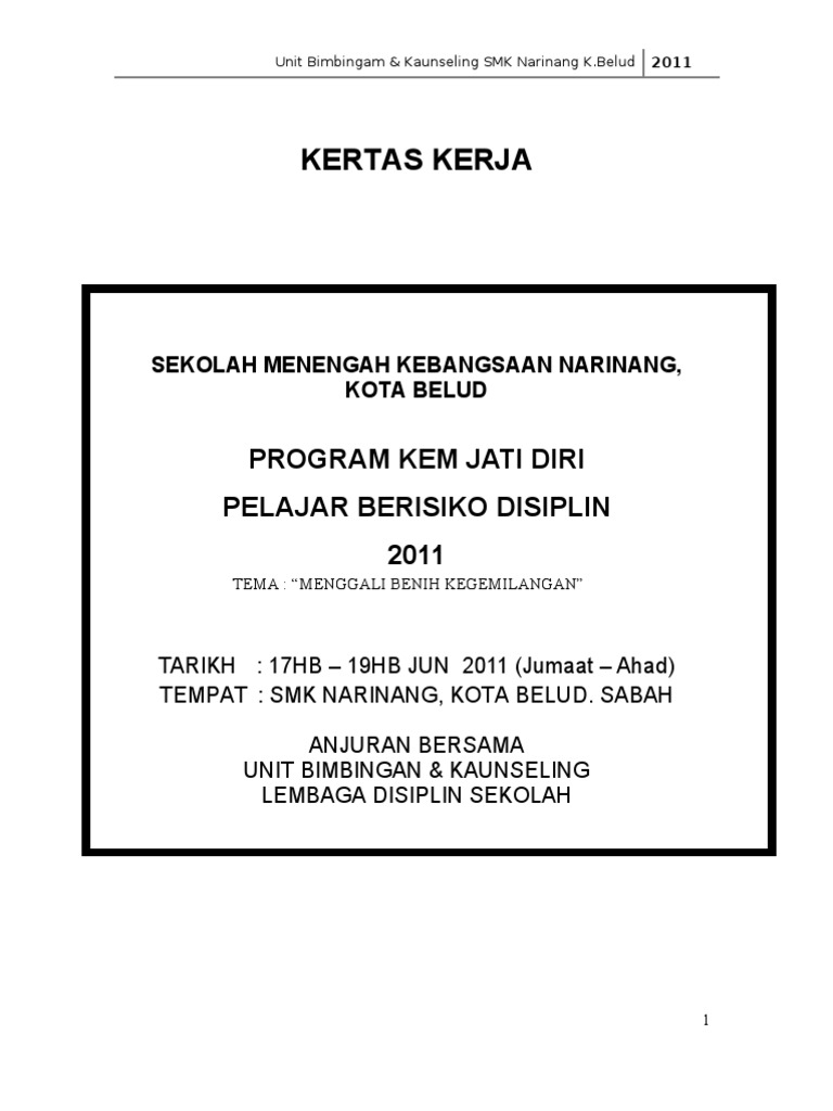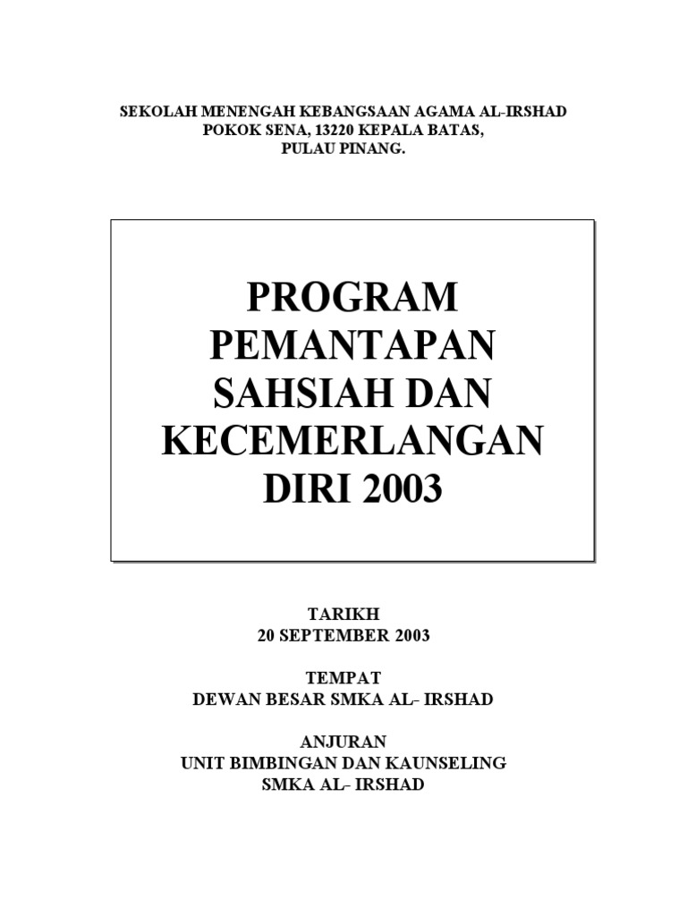 Doc Kertas Kerja Kem Kecemerlangan Sahsiah Diri Murid Sesi Petang Smk Bukit Rahman Putra 2014 Rashid Sarti Academia Edu