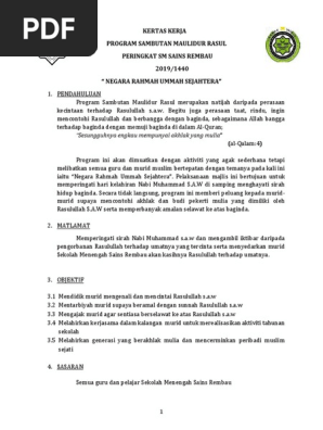 Kertas kerja sambutan maulidur rasul peringkat sekolah menengah. Bulan ini lahirnya seorang insan yang teragung dan mulia. Kertas kerja maulidur rasul 2014 1. Kertas kerja majlis sambutan maulidurrasul kertas kerja majlis sambutan maulidurrasul 1435h 2014m. Pendahuluan majlis sambutan maulidurrasul merupakan natijah daripada perasaan kecintaan terhadap rasulullah s a w.